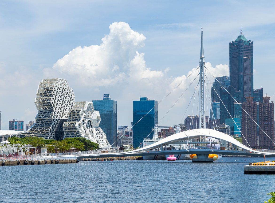 【高雄展覽館】獨有室內延伸至戶外港邊的會展空間,綠色建築,眺望高雄港灣、視野絕佳。高雄展覽館導入先進會展科技,為南台灣全新的國際商業活動平台與人文生活場域。