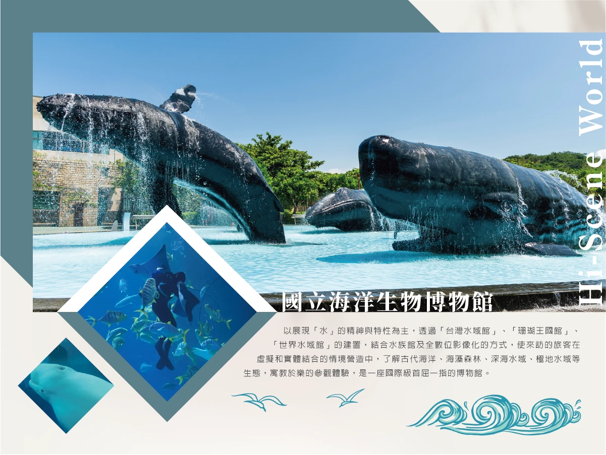 以展現「水」的精神與特性為主,透過「台灣水域館」、「珊瑚王國館」、「世界水域館」的建置,結合水族館及全數位影像化的方式,使來訪的旅客在虛擬和實體結合的情境營造中,了解古代海洋、海藻森林、深海水域、極地水域等生態,寓教於樂的參觀體驗,是一座國際級首屈一指的博物館。