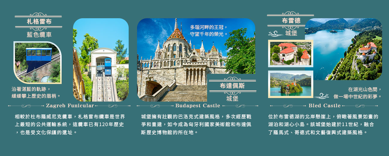 門票安排|巴拉頓湖渡輪、札格雷布藍色纜車(如遇纜車整修,將替換成藍色電車,造成不便敬請見諒。)。