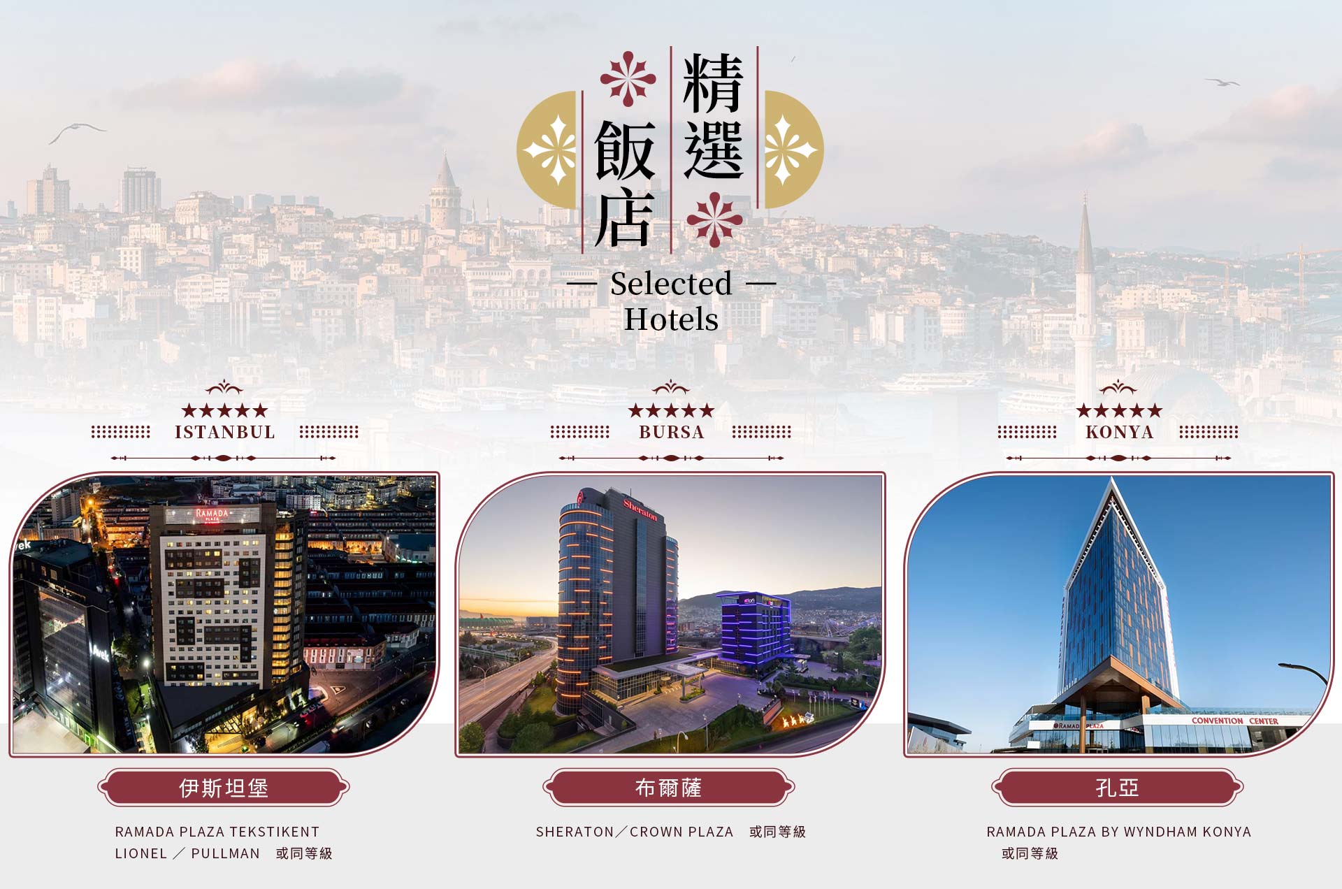 住宿:RAMADA PLAZA TEKSTIKENT 或 LIONEL 或 PULLMAN (5★)或同級