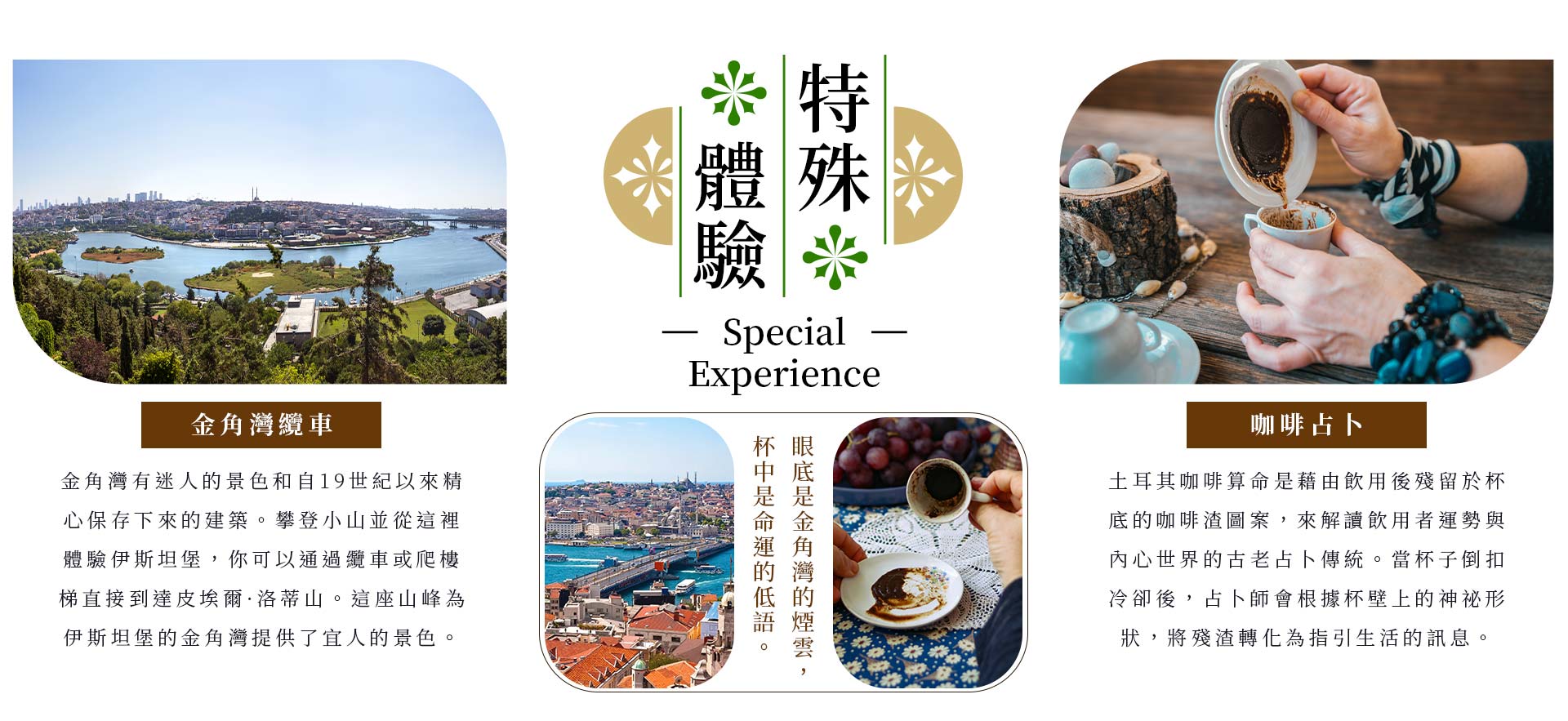 博斯普魯斯海峽遊船,享受土耳其飲品,品嚐精心挑選的拼盤小吃和水果。眼前黃昏灑落的餘暉 看著岸邊染上玫瑰橙色的宣禮塔和宮殿。暮色漸漸降臨時,馬爾馬拉海吹來一陣徐徐的微風。沿著海峽兩岸散佈著蘇丹王的夏宮、貴族的別墅及富豪的華宅,搭乘遊船欣賞如畫的風光,並體驗在短時間內往返歐、亞兩大洲!