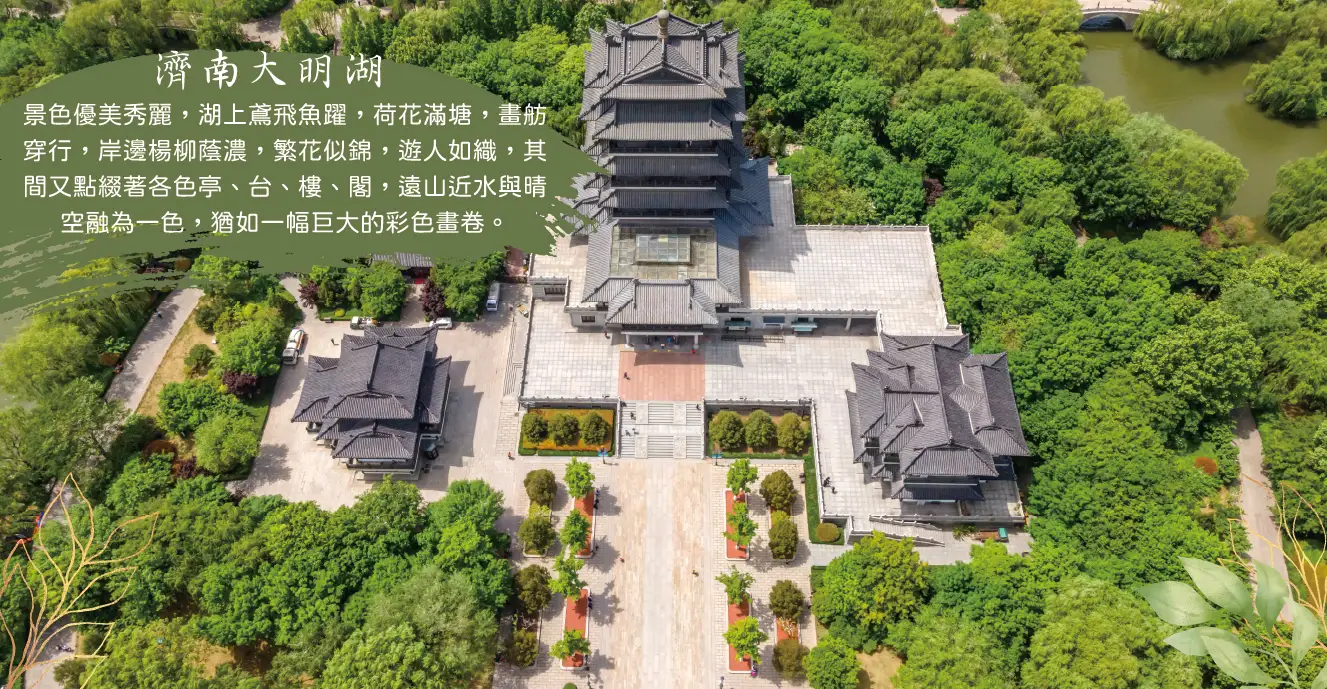 【大明湖】大明湖風景區位於濟南市中心偏東北處、舊城區北部,是集水域風光、園林景觀、古建築為一體的公園。而被譽為「中國第一泉水湖」的大明湖就在公園中心,更可以說公園是依湖而建的。