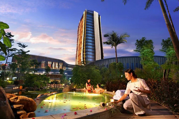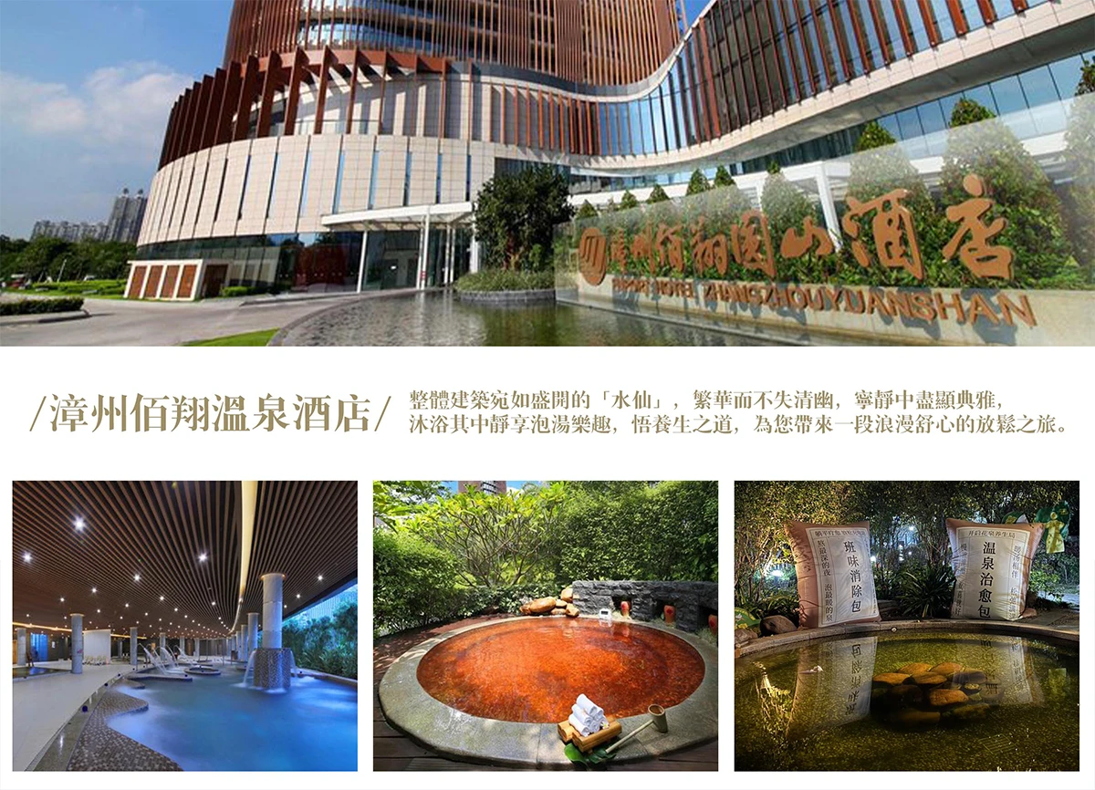 【漳州佰翔圓山溫泉大酒店】是漳州市區的高端五星級溫泉度假酒店,由美國NBBJ設計,造型如盛開水仙花。坐落於薌城區,近九龍江與圓山,主打特色園林溫泉、299間豪華客房及大型宴會廳。
