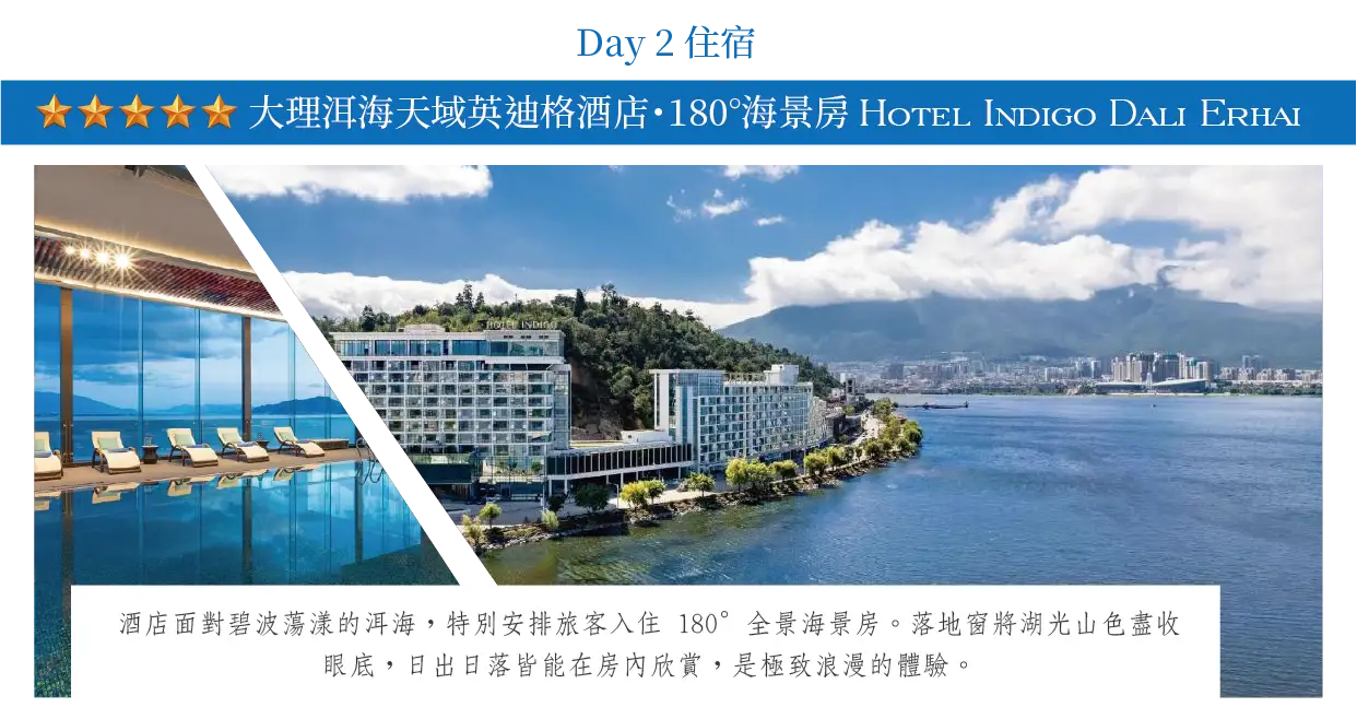 住宿:大理洱海天域英迪格酒店(5☆) ~特別安排入住180°海景房