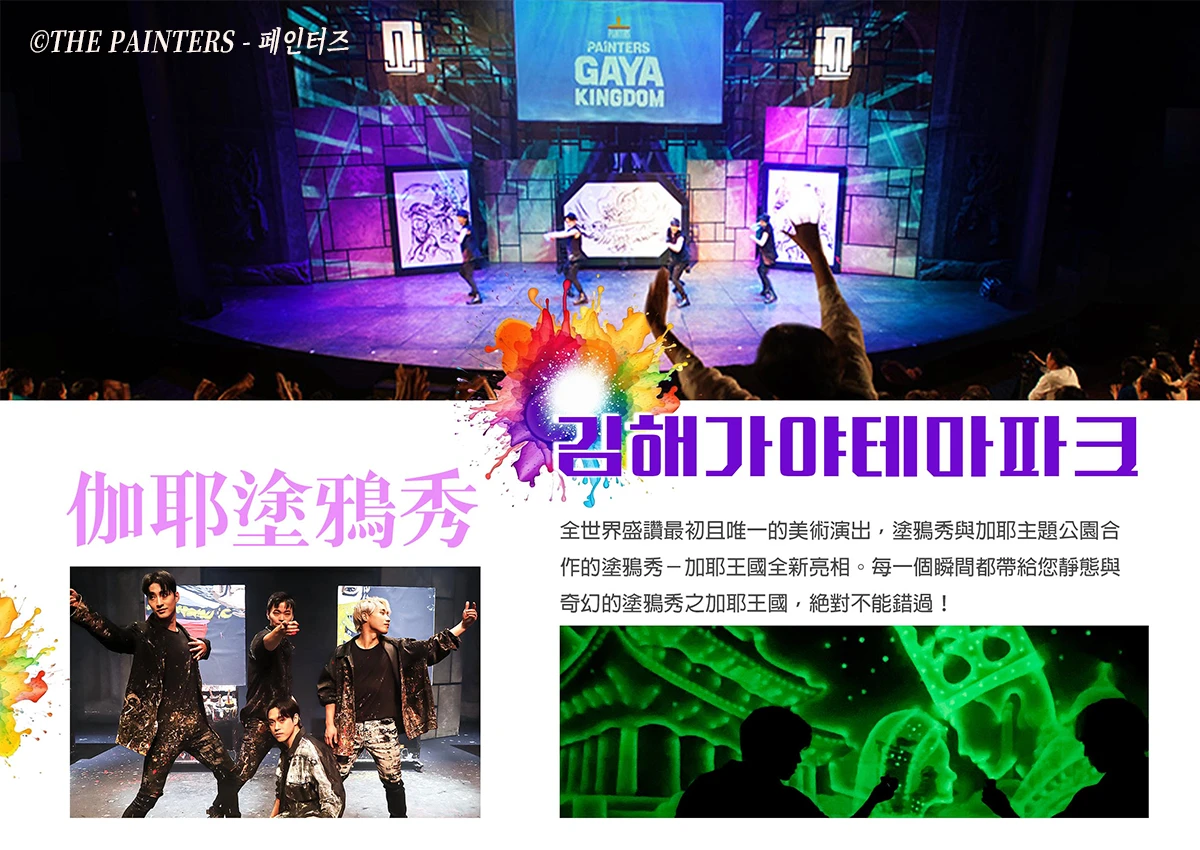 【塗鴉秀】全世界盛讚最初且唯一的美術演出,塗鴉秀與加耶主題公園合作的塗鴉秀-加耶王國全新亮相。每一個瞬間都帶給您靜態與奇幻的塗鴉秀之加耶王國,絕對不能錯過!