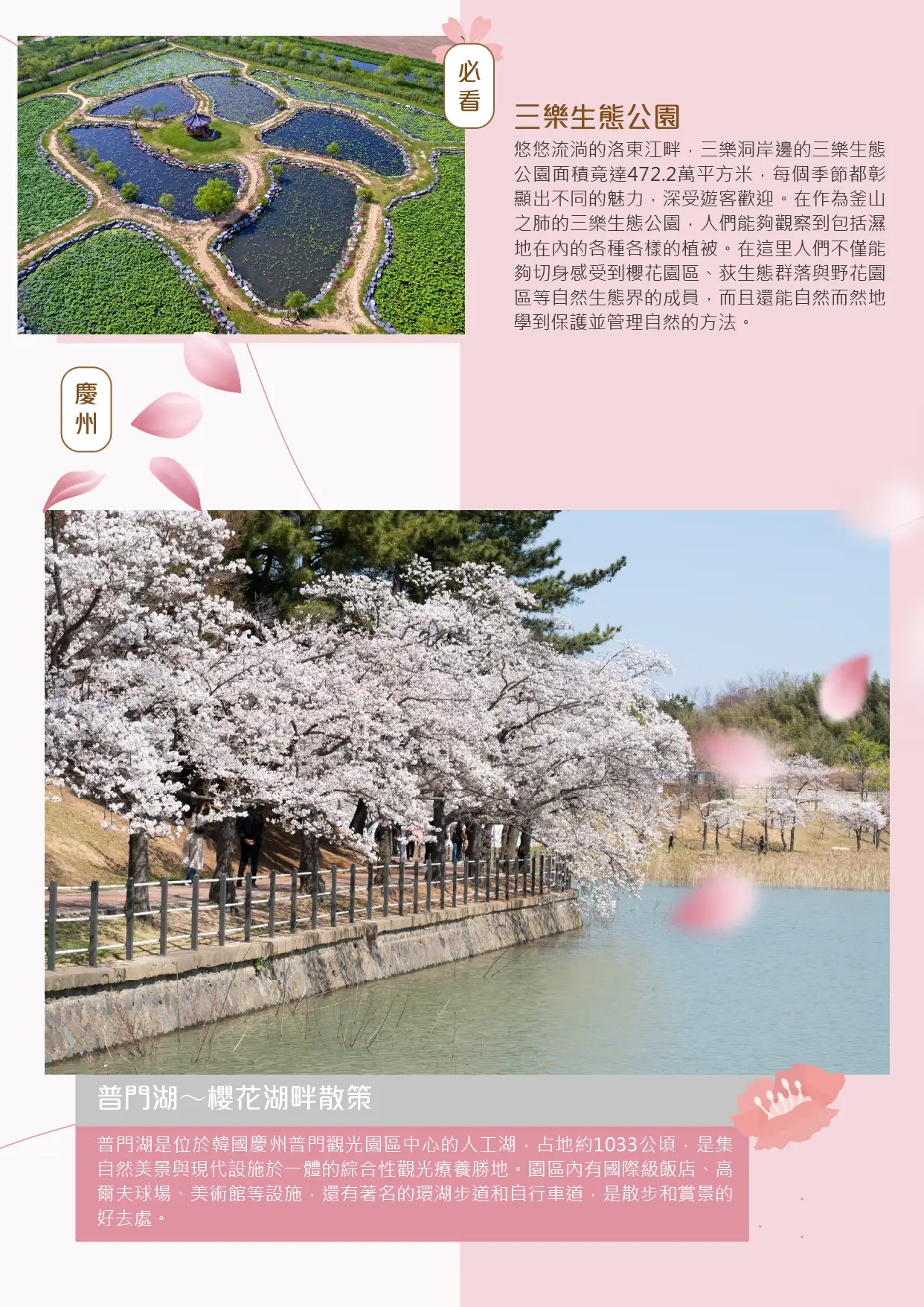 【普門湖~櫻花湖畔散策】普門湖是位於韓國慶州普門觀光園區中心的人工湖,占地約1033公頃,是集自然美景與現代設施於一體的綜合性觀光療養勝地。園區內有國際級飯店、高爾夫球場、美術館等設施,還有著名的環湖步道和自行車道,是散步和賞景的好去處。