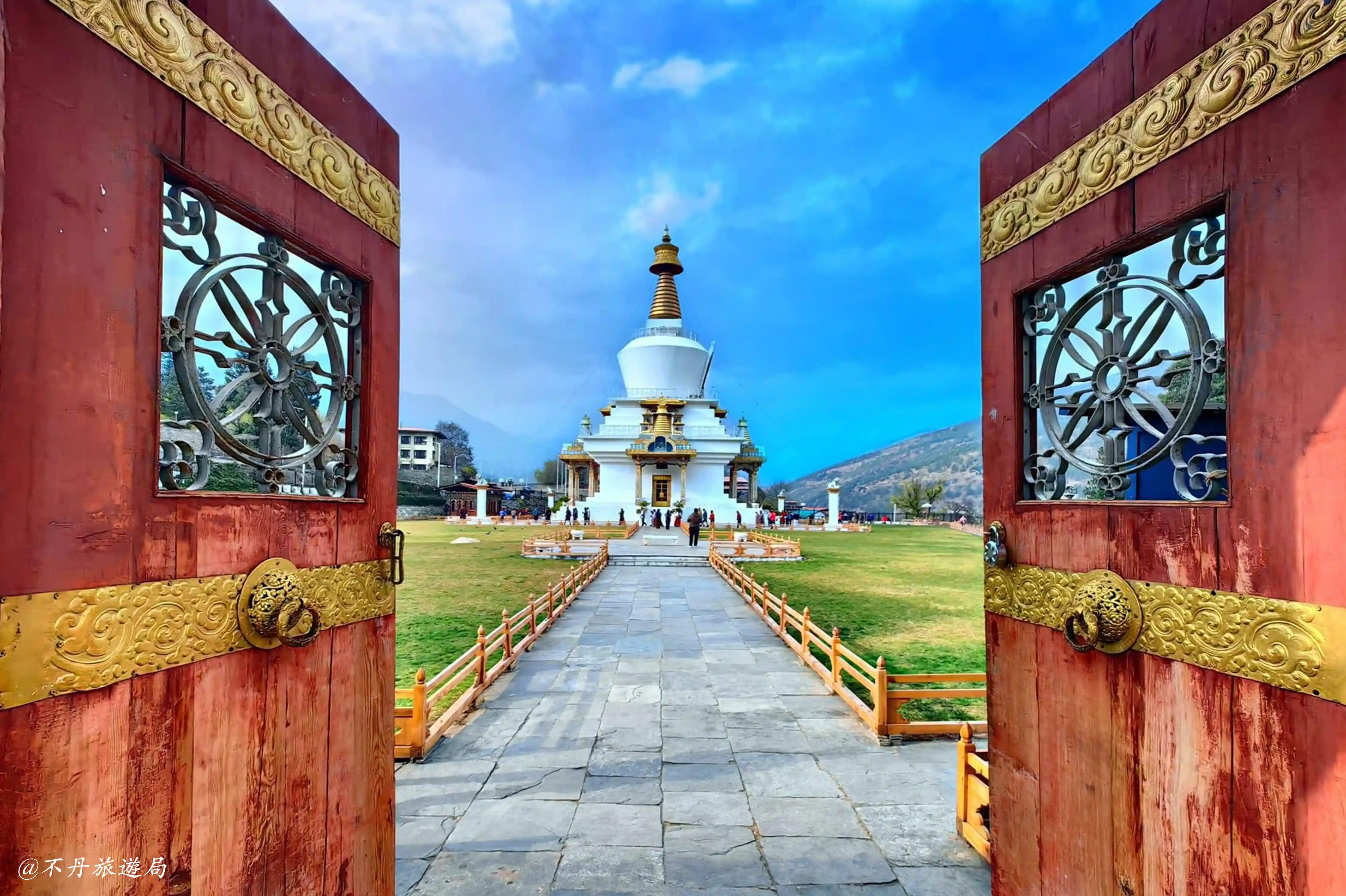 【國家紀念塔】常見信徒繞塔誦經、轉經輪。這座紀念塔是第三任國王吉美·多吉·旺楚克陛下(被譽為「現代不丹之父」)為祈願世界和平與繁榮而構思興建的地標。1974年於國王辭世後完工,既是對先王的追思,也是和平的象徵。