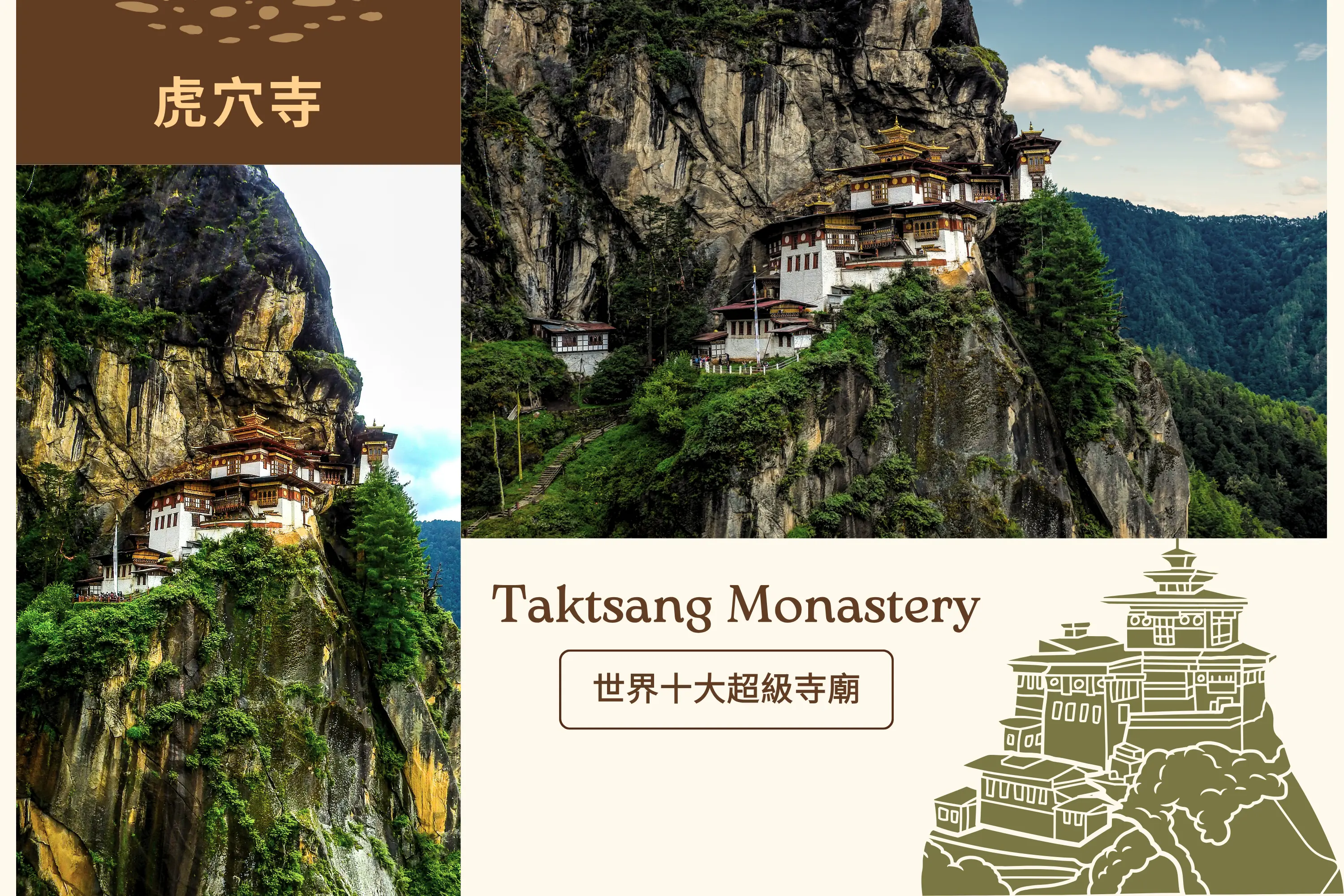 【虎穴寺】又稱【塔克桑寺Taktsang Monastery】。這是不丹最著名的寺廟之一,位於帕羅谷地上方約900公尺的懸崖峭壁上,景色壯麗。