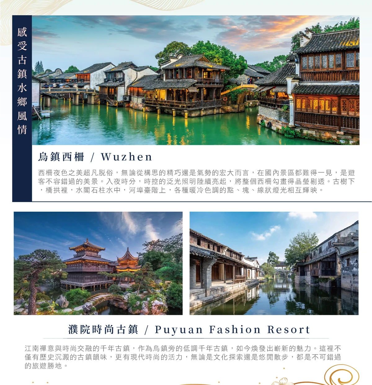【悠閒時光-雙人下午茶】在古鎮的臨水茶鋪,我們為大家準備了雙人懷舊下午茶點。您可以和夥伴坐在靠窗的位置,看著搖櫓船在水面上蕩開波紋,喝一口清茶,嚐兩塊蘇式點心。這才是江南旅行的正確打開方式