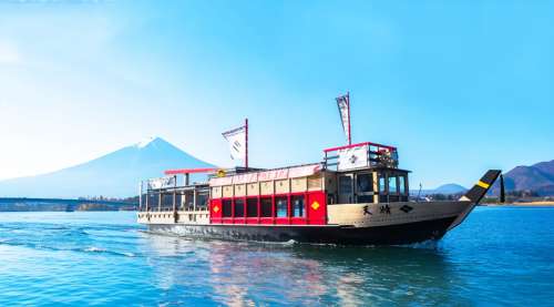 河口湖遊覽船「天晴號」是一艘以日本戰國時海軍為主題打造的遊船,外觀華麗壯觀。搭乘遊覽船可在湖面上悠閒巡航,從不同角度欣賞富士山倒映於湖水的絕景。全程約20分鐘,四季皆能享受不同風光,是體驗河口湖魅力的熱門方式之一。
