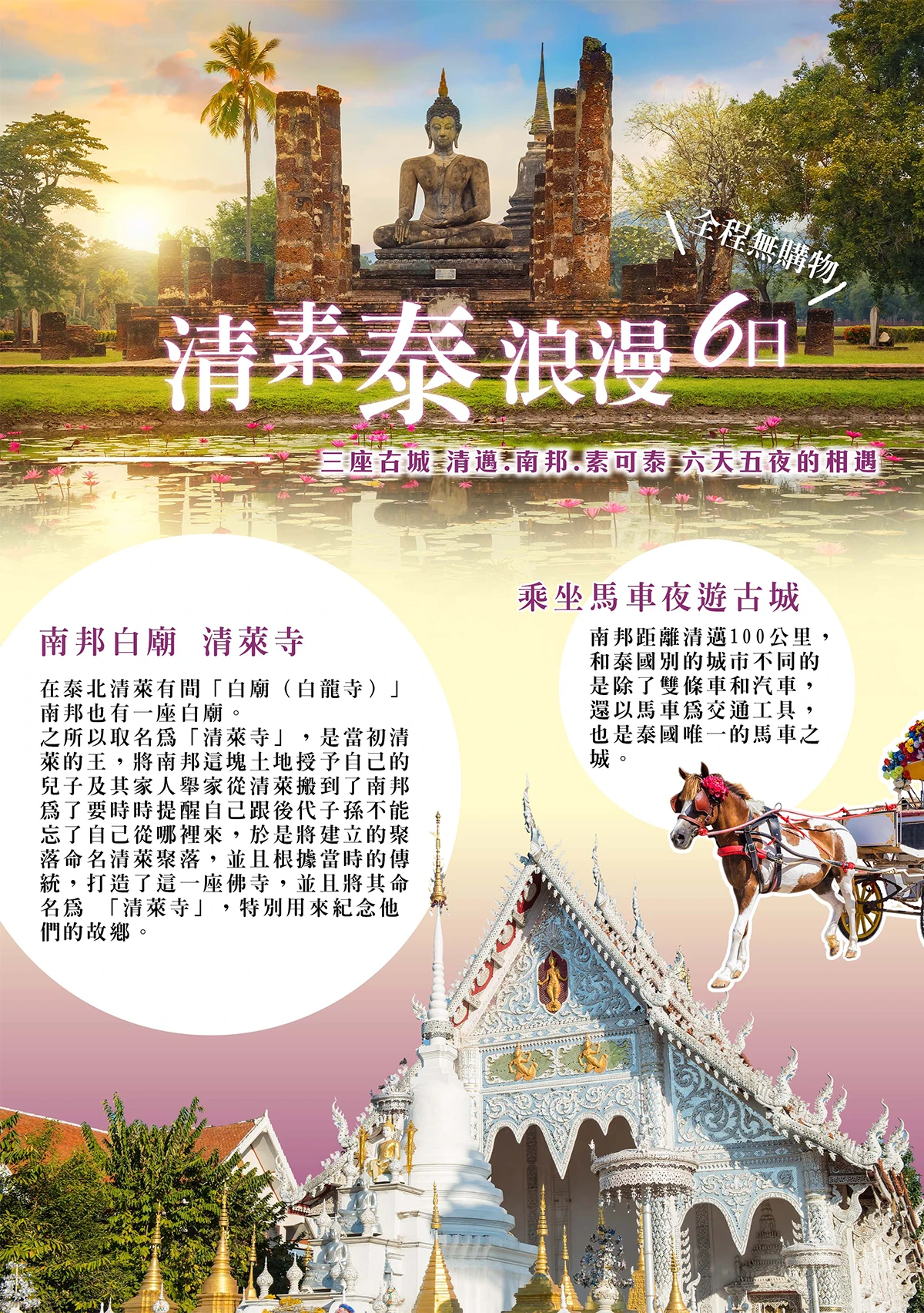 素可泰🚌清晨橋頭佈施 (6:00自由參加) 🚌古城遺跡之一~西昌寺(絕美說話佛) 🚌蘭甘亨國家博物館🚌七世皇行宮🚌清邁🚌寶格麗人妖秀